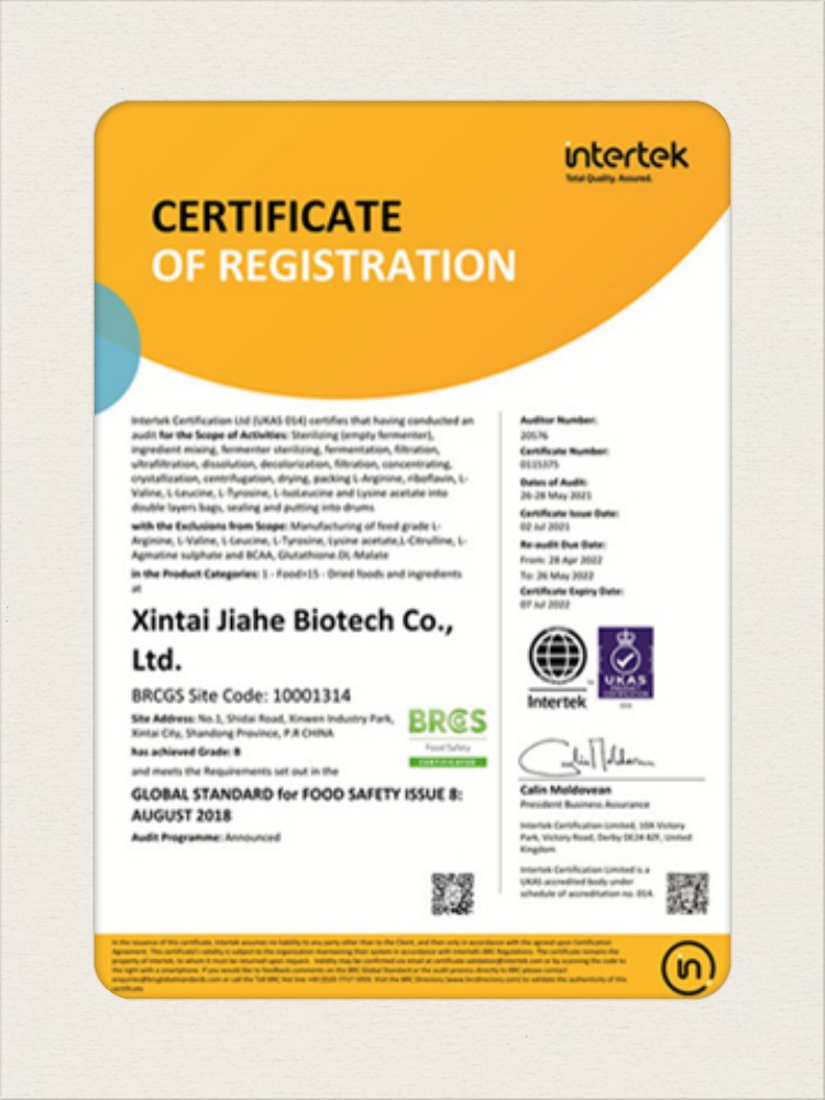 汕頭佳禾生物科技有限公司是一家致力于氨基酸及其衍生物研發(fā)、生產(chǎn)和銷(xiāo)售的國(guó)家高新技術(shù)企業(yè),先后通過(guò)了國(guó)家藥品GMP認(rèn)證,ISO9001質(zhì)量體系認(rèn)證、ISO14001環(huán)境管理體系認(rèn)證。目前,公司擁有“廣東省專(zhuān)精特新中小企業(yè)”、“廣東省氨基酸產(chǎn)品工程技術(shù)研究中心”、“汕頭市生物發(fā)酵工程技術(shù)研究開(kāi)發(fā)中心”、“汕頭市知識(shí)產(chǎn)權(quán)優(yōu)勢(shì)企業(yè)”、“多項(xiàng)國(guó)家發(fā)明專(zhuān)利”、“廣東省守合同重信用企業(yè)”等多項(xiàng)資質(zhì)和榮譽(yù),旗下“佳禾牌”系列產(chǎn)品已成為原料藥行業(yè)知名品牌。 新泰市佳禾生物科技有限公司成立于2012年8月,注冊(cè)資金2億元,公司位于山東泰安新泰市新汶工業(yè)園區(qū),是國(guó) 家級(jí)高新技術(shù)企業(yè)、山東省“專(zhuān)精特新”企業(yè)、山東省制造業(yè)單項(xiàng)冠軍企業(yè)、泰安市科技型中小企業(yè)、泰安市農(nóng)業(yè)產(chǎn)業(yè)化龍頭企業(yè)、中國(guó)生物發(fā)酵產(chǎn)業(yè)協(xié)會(huì)理事單位。